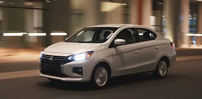 A fuel-efficient compact car that doesn’t sacrifice performance, style, or comfort. The 2024 Mitsubishi Mirage G4 sports smooth performance, ample cargo space, and the latest tech for a ride packed with attitude.